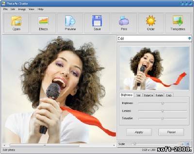 AMS Photo Art Studio представляет собой новое программное обеспечение для украшения фотографий. В комплект входит пакет из пяти удобных программ для создания открыток, коллажей, наложения рамок и пакетной обработки фотографий. В течение буквально нескольких секунд, вы сможете создать стильную рамку, создать открытку или коллаж. Программа включает в себя небольшое число функций, необходимых для обработки цифровых фотографий: автоматическое редактирование, создание специальных эффектов, кадрирование, добавление украшений и знаков. У Photo Art Studio настраиваемый пользовательский интерфейс. С программой легко и удобно работать. Встроенный в справочную систему онлайн учебник, который поможет вам превратить ваши фотографии в подлинный шедевр. Особенности: • Удобный пользовательский интерфейс и простота эксплуатации. • Более трех сотен различных схем. • Огромный набор новых шаблонов в новой версии. []  [/] Размер: 22,4 Мб Информация на восстановление: +1% Язык Интерфейса: English Лекарство: в архиве Платформа: Windows 2000/2003/XP/Vista/ 7 Cкачать Photo Art Studio v3.45: