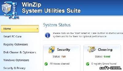WinZip System Utilities Suite — комплексное решение для очистки, защиты и оптимизации ПК: - Очистка — утилиты-чистильщики удалят устаревшие и более не нужные системные файлы, исправят ошибки реестра, ликвидируют дубликаты файлов и освободят неиспользуемую память для увеличения производительности. - Защита — утилиты для обеспечения защиты и ограничения доступа к данным уберут скрытые пути к приватным данным, предоставят возможность полностью удалить частные данные, зашифруют и защитят особо важные личные файлы пользователя, создадут резервные копии необходимых файлов и документов, а также в автоматическом режиме восстановят случайно удалённые файлы данных. - Оптимизация — инструменты оптимизации обеспечат быстрое и эффективное функционирование системы путём обновления драйверов устройств, дефрагментации жесткого диска, проверки накопителей для выявления ошибок файловой системы или аппаратных сбоев, а также удаления ненужных программ. Особенности: - Очистка — утилиты-чистильщики удалят старые и более не должные системные файлы, исправят оплошности реестра, ликвидируют дубликаты файлов и освободят неиспользуемую память для увеличения производительности. - Защита — утилиты для обеспечения защиты и ограничения доступа к данным снимут скрытые пути к приватным данным, предоставят возможность полностью удалить частные эти, зашифруют и защитят особенно важные собственные файлы пользователя, создадут резервные копии нужных документов и файлов, а также в машинальном режиме восстановят случайно удаленные файлы данных. - Оптимизация — инструменты оптимизации обеспечат эффективное и скорое функционирование системы путем обновления драйверов устройств, дефрагментации жесткого диска, обследования накопителей для выявления ошибок файловой системы иначе аппаратных сбоев, а также снятия лишних программ.